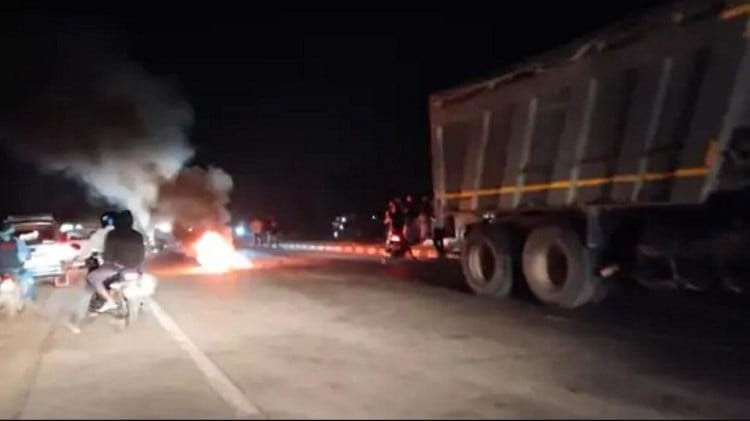 रायपुर: सदक पर खड़े ट्रक से टक्कर के बाद बाइक में लगी आग, पुलिस कांस्टेबल सहित दो की मौत – रायपुर में ट्रक से बाइक की टक्कर में एक पुलिस कांस्टेबल समेत दो की मौत
