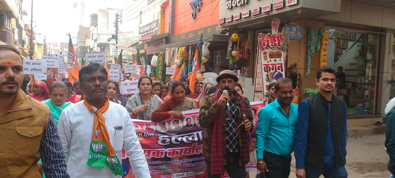 पीएम आवास व आवासीय पट्टा नहीं देने के मांगो को लेकर भाजपा ने किया विधायक कार्यालय का घेराव