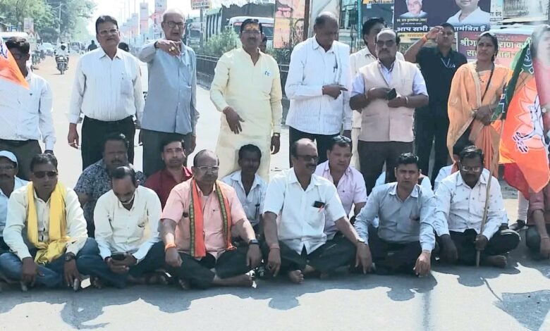 बलौदा बाजार के जिला भाजपा प्रभारी के नेतृत्व में चक्का जाम कर भाजपा ने जताया विरोध