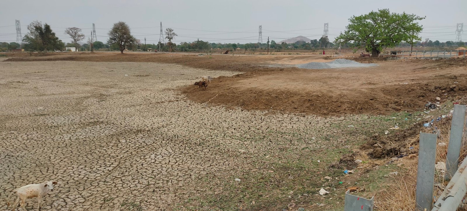 मवेशी भटक रहे दर दर जीने की आस में,सूखा पड़ा डबरी तालाब