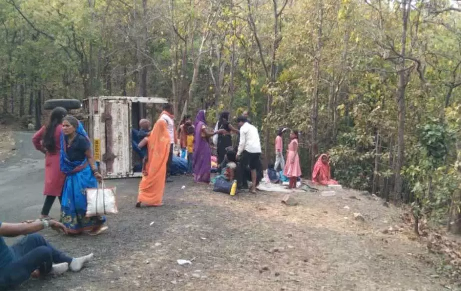 गौरेला पेंड्रा मरवाही। अमरकंटक से नर्मदा दर्शन कर वापस अपने घर लौट रहे श्रद्धालु हादसे का शिकार हो गए जिसमे 20 श्रद्धालु घायल हो गए. सभी को जिला अस्पताल में भर्ती कराया गया है. घायलों में 6 लोगों को अधिक चोटें आई है. ये सभी मुंडन कार्यक्रम से लौट रहे थे. मामला गोरेला थाना क्षेत्र का है. अमरकंटक गौरेला मुख्यमार्ग पर स्थित चुक्तिपानी गांव में ये हादसा हुआ. ये सभी अनूपपुर जिले के भेलवा गांव के रहने वाले हैं. श्रद्धालुओं से भरी पिकअप वाहन तेज रफ्तार से आ रही थी. रफ्तार अधिक होने के कारण वाहन अनियंत्रित हो गया. पिकअप वाहन चुक्तिपानी गांव के पास अंतिम घाट पर पलट गया, जिसमें 20 लोग घायल हो गए. घायलों में 6 लोगों को गंभीर चोटें आई है|