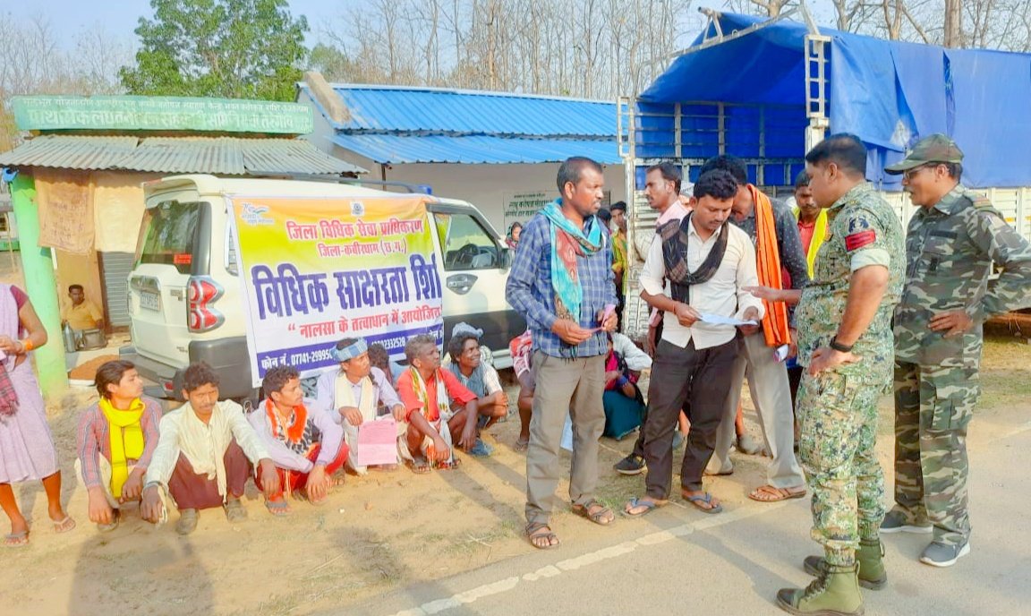 कवर्धा| थाना तरेगांँव जंगल प्रभारी उप. निरीक्षक युवराज साहू के कुशल नेतृत्व में थाना तरेगाँव जंगल पुलिस टीम द्वारा जिला विधिक सेवा प्राधिकरण के संयुक्त तत्वाधान में ग्राम तरेगाँव जंगल हाट बाजार में दिनांक-21.04.2023 को विधिक साक्षरता जागरूकता शिविर आयोजित किया गया। शिविर में आसपास से आये विशेष संरक्षित जनजाति बैगा और अन्य वनांचल ग्राम वासियों को क़ानून की जानकारी देकर जागरूक किया गया। साथ ही चंद्रकांत पैरालीगल वालिंटियर के द्वारा बाल विवाह प्रतिषेध अधिनियम 2005 के तहत बताया कि बाल विवाह कानूनी अपराध है। विवाह के लिए लड़की की उम्र 18 वर्ष और लड़के की उम्र 21 वर्ष पूर्ण होने के उपरांत ही विवाह करें। क़ानून के उलंघन पर 2 साल की जेल एवं एक लाख की जुर्माना हो सकता है। कल अक्षय तृतीया अक्ती है, इसलिए विवाह हेतु लागू क़ानून का पालन करें। विधिक सहायता योजना एवं अन्य लोगों के हितों से जुड़े कानूनी जानकारी दी गई। इस अवसर पर थाना तरेगाँव जंगल के स्टॉफ थाना प्रभारी उप निरी0 युवराज साहू सऊनि बोनीफास मिंज प्र0आर0 बिरेंद्र बंजारे आर0 प्रमोद चंद्रवंशी एवं पैरा लीगल वालिंटियर चंद्रकांत उपस्थित थे।