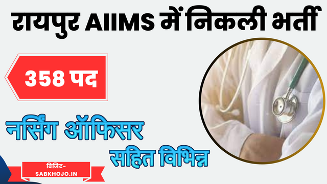 रायपुर AIIMS में निकली 358 पदों पर बम्पर भर्ती, करें ऑनलाइन आवेदन
