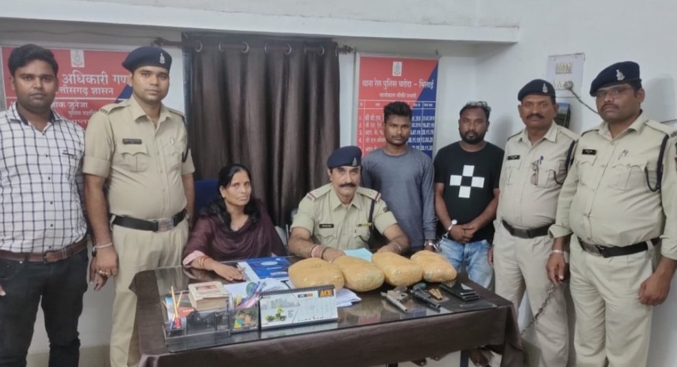 मुखबिर कि सूचना प्राप्त होने पर उप.पु.अधि. के मार्गदर्शन पर जी आर पी एंटी क्राइम टीम एवं जीआरपी चौकी चरोदा द्वारा आज दिनांक 21/07/2023 को एच केबिन बीएवाई चरोदा के पास दो व्यक्ति नाम प्रशांत नंदा पिता राजू नंदा उम्र 24 साल तथा संतोष क्षत्रिय उम्र -35 वर्ष पता बालंगीर उड़ीसा के अपने पास रखे दो पीठू बैग जिसके अंदर 4किलो 60ग्राम अवैध मादक पदार्थ गांजा पाया गया जिसकी कीमत 40000/-रूपये तथा दो देशी कट्टा एवम 03 नग जिन्दा कारतूस जप्त किया गया। अप.क्र.88/23 धारा NDPS ACT 20B एवम 25 आर्म्स एक्ट के तहत कार्यवाही कर.न्यायालय में पेश कर न्यायिक रिमांड पर केंद्रीय जेल दुर्ग दाखिल किया गया।