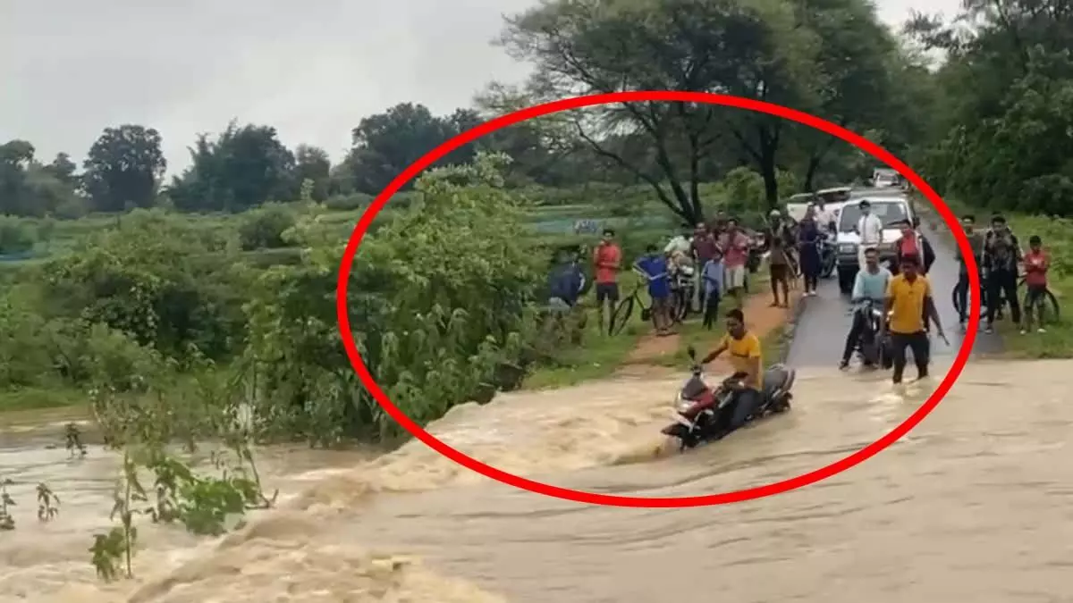अंबिकापुर। छत्तीसगढ़ के सरगुजा अंचल में इस बार देर से शुरू हुई बारिश ने कहर बरपा दिया है। बुधवार को एक उफनते नाले को पार कर रहा बाइक सवार युवक बाइक सहित बह गया। वह बाइक से पुलिया पार करने की कोशिश कर रहा था। पुलिया के ऊपर से बह रहा था नाले का पानी। बाइक सहित बहने के बाद आगे जाकर युवक ने पेड़ की डगाल पकड़ कर अपनी जान बचाई। यह मामला दरिमा थाना क्षेत्र अंतर्गत छिंदकालो का बताया जा रहा है।