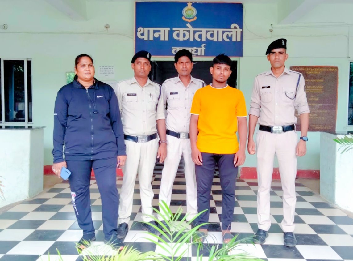 कबीरधाम जिले के थाना सिटी कोतवाली में नाबालिक पीड़िता की माता के द्वारा थाना आकर रिपोर्ट दर्ज कराया गया। कि मेरी पुत्री स्कूल में पड़ती है। कई दिनो से स्कूल नहीं जाने पर मेरे द्वारा पुछने पर बतायी कि आतंक योगी नाम का लड़का मुझे स्कुल जाने तक पीछा करता है। जिस पर आतंक योगी को ऐसा नहीं करने हेतु समझाईस देने पर गंदी गंदी गाली गलीच कर जान से मारने की धमकी देकर बेईज्जत करने के नियत से छेड़छाड़ किया है। कि प्रार्थिया के रिपोर्ट पर थाना कवर्धा में अपराध क्रमांक 560/2023 धारा 354 (क), 294, 323, 506 भादवि 8 पोक्सो एक्ट का अपराध पंजीबद्ध कर विवेचना में लिया गया। मामले की गंभीरता को देखते हुए तत्काल थाना प्रभारी द्वारा उक्त मामले की जानकारी जिले के वरिष्ठ अधिकारी गणों को दी गई, जिस पर पुलिस अधीक्षक डॉ. अभिषेक पल्लव के कुशल निर्देशन एवं अतिरिक्त पुलिस अधीक्षक हरीश राठौर तथा उप. पुलिस अधीक्षक मुख्यालय कौशल किशोर वासनिक के मार्गदर्शन में थाना प्रभारी सिटी कोतवाली निरीक्षक एम.बी. पटेल के द्वारा विशेष टीम गठित कर आरोपी के पता तलाश हेतु रवाना किया गया। जिस पर टीम को जल्द ही सफलता प्राप्त हुआ और आरोपी आतंक योगी, उर्फ दुसेननाथ योगी, पिता रमेशनाथ योगी उम्र 20 साल साकिन ग्राम बघरां चौकी पोड़ी थाना बोड़ला हाल शंकर नगर वार्ड नं. 17 कवर्धा थाना कवर्धा जिला कबीरधाम छ.ग. को पूछताछ करने पर अपना अपराध स्वीकार किया। जिसे विधिवत आज दिनांक-19.08.2023 को गिरफ्तार कर न्यायालय के समक्ष प्रस्तुत कर ज्यूडिशियल रिमांड पर भेजा गया है।