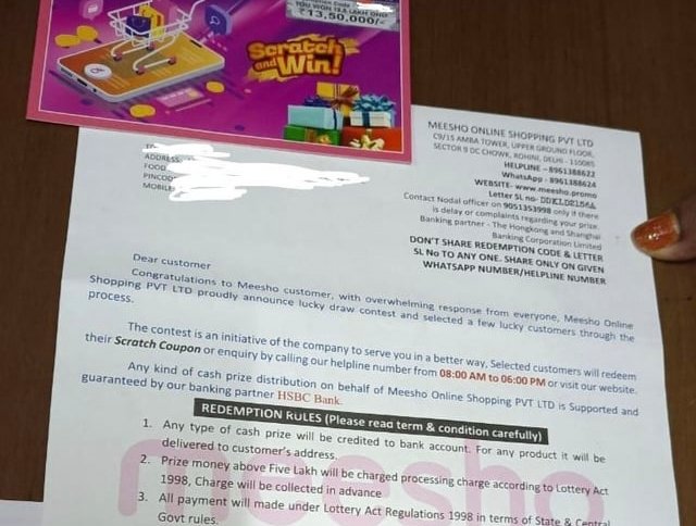 “Meesho” के नाम पर आ रहे इनामी लिफाफे और QR कोड से स्कैम…
