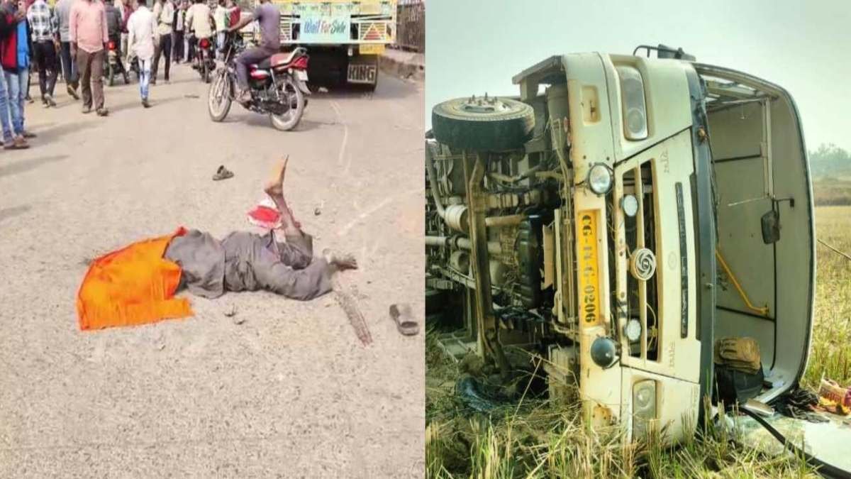 BREAKING : ट्रक ने बाइक को रौंदा, एक की मौके पर मौत, इधर यात्रियों से भरी बस पलटी, कई घायल