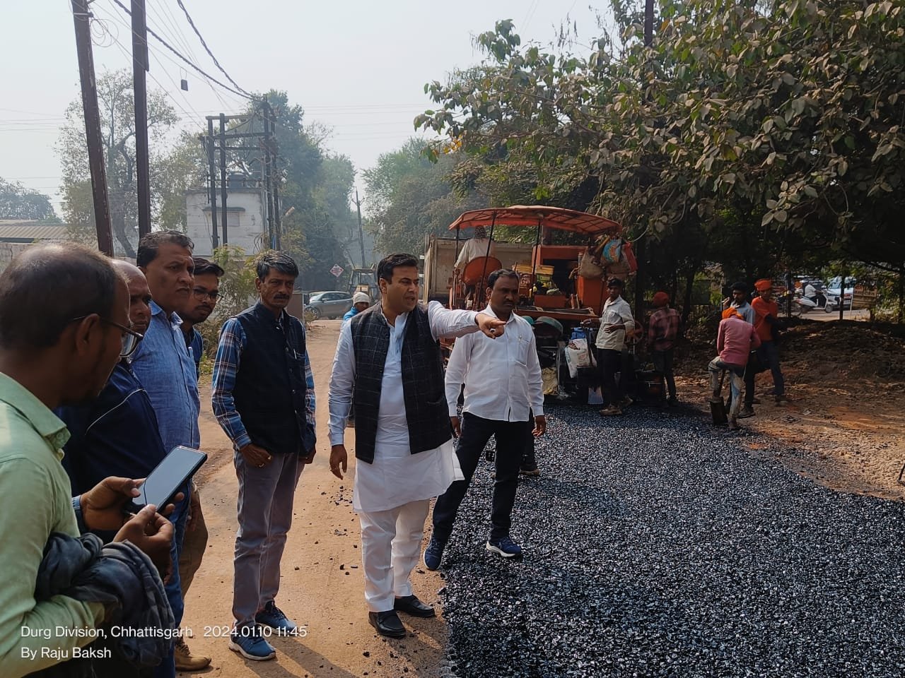 तहलका न्यूज दुर्ग// महापौर धीरज बाकलीवाल ने शहर में चल रहे विकास कार्य को लेकर सड़क डामरीकरण निर्माण कार्य का अफसरों और ठेकेदार के साथ मौके पर पहुंच किया औचक निरीक्षण