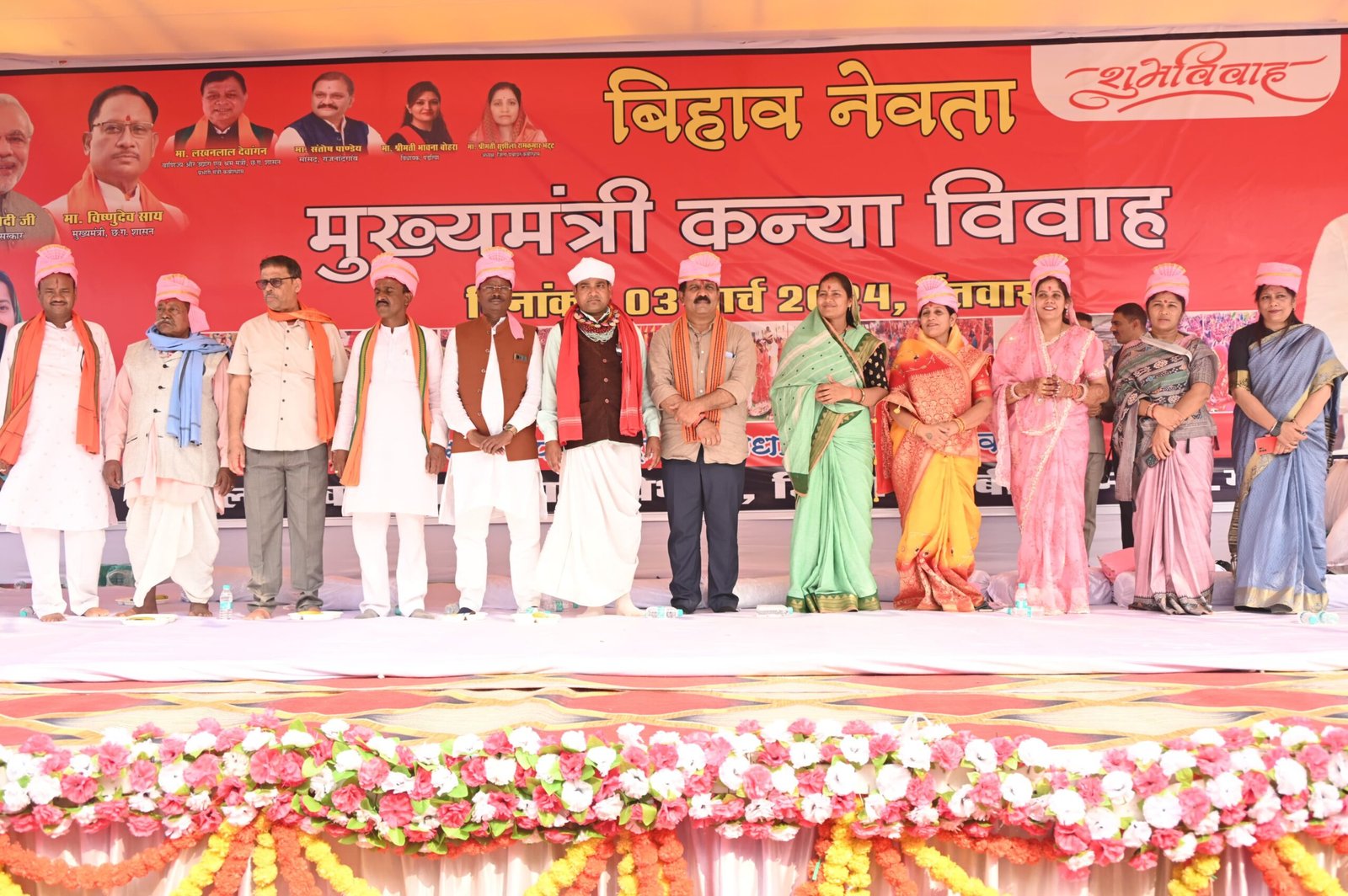 उपमुख्यमंत्री विजय शर्मा और कैबिनेट मंत्री श्रीमती लक्ष्मी राजवाड़े 290 बेटियों की सामुहिक विवाह में शामिल हुए