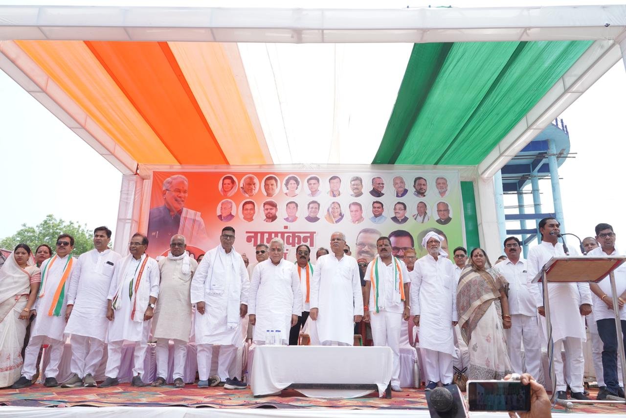 तहलका न्यूज // दुर्ग लोकसभा क्षेत्र में कांग्रेस प्रत्याशी राजेंद्र साहू के समर्थन में आज दिग्गज नेताओं की मौजूदगी में कांग्रेस कार्यकर्ताओं की भारी भीड़ के साथ विशाल रैली निकाली गई। जोशीले नारे लगाते हुए कांग्रेस कार्यकर्ताओं की नामांकन रैली कलेक्टोरेट पहुंची, जहां राजेंद्र साहू ने पूर्व मुख्यमंत्री भूपेश बघेल और पूर्व केबिनेट मंत्री रविंद्र चौबे की मौजूदगी में नामांकन दाखिल किया। इस दौरान कांग्रेस प्रत्याशी राजेंद्र साहू के प्रस्तावक मनवा कुर्मी क्षत्रिय समाज के पूर्व केंद्रीय अध्यक्ष सीताराम वर्मा और भिलाई चरौदा के महापौर निर्मल कोसरे भी मौजूद रहे।