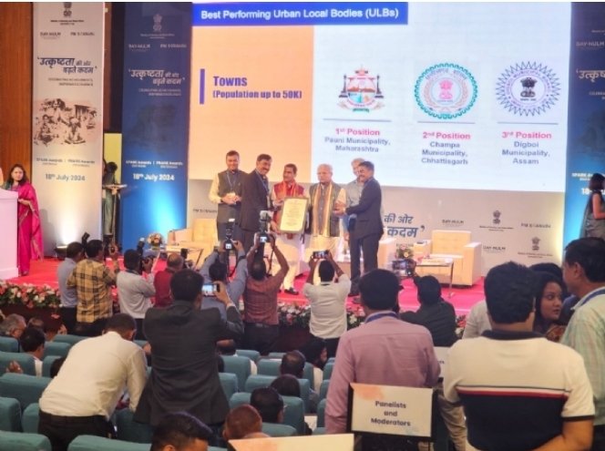 जांजगीर चांपा नगर पालिका को सर्वश्रेष्ठ नगरीय निकायों की श्रेणी मे नवाजा गया द्वितीय राष्ट्रीय पुरस्कार से