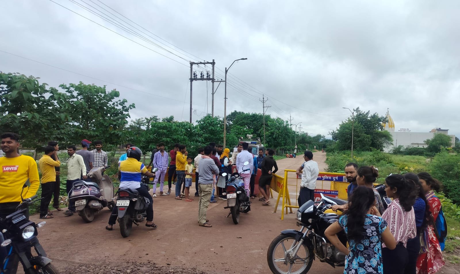 शिवनाथ नदी में बढ़ते जल प्रवाह को देखते हुए पुलिस ने लोगो की सुरक्षा के लिए लगाया बैरिकेट