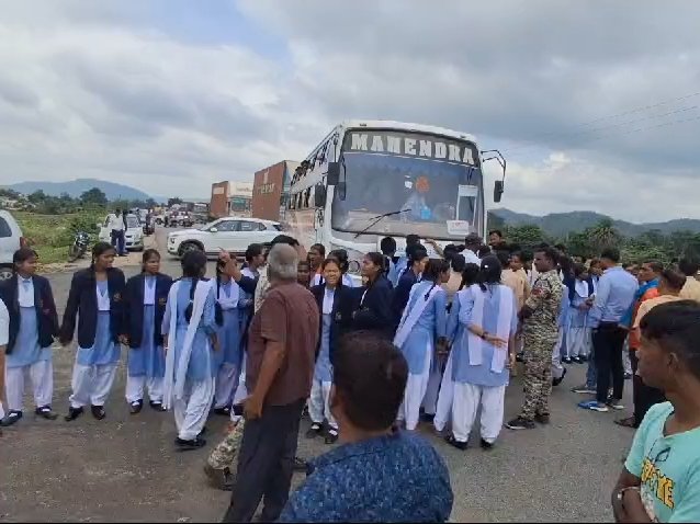 कांकेर में शिक्षकों की कमी से नाराज स्कूली छात्राओं ने नेशनल हाईवे पर किया चक्काजाम