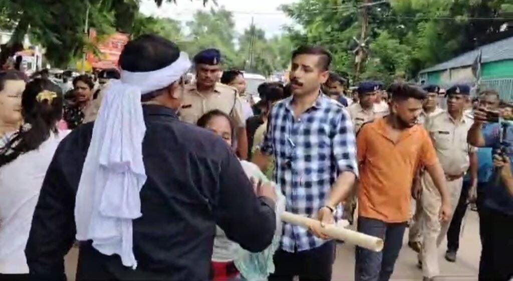 तहलका न्यूज दुर्ग// 4 अगस्त की रात को आरएसएस कार्यालय के पास खड़े विश्व हिंदू परिषद के कार्यकर्ता अंजय ताम्रकार व उसके साथी समर्थ ताम्रकार पर असामाजिक तत्वों ने जानलेवा हमला कर उन्हें घायल कर दिया उसके बाद उसे उपचार के लिए जिला अस्पताल में भर्ती कराया गया। इस मारपीट का कारण सड़क से वाहन हटाने के विवाद को लेकर शुरू हुआ, इस विवाद से क्रोधित असामाजिक तत्वों ने अंजय ताम्रकार पर हमला कर दिया जिससे अंजय अपनी जान बचाने के लिए आर्य नगर स्थित गायत्री हॉस्पिटल की ओर भागा। लेकिन इन असामाजिक तत्वों ने अस्पताल के अंदर पहुंचकर, वहां भी तोड़फोड़ मचाया। वही मोहननगर थाना पुलिस को इसकी सूचना मिलने पर अंजय और उसके साथी के साथ मारपीट कर जानलेवा हमला करने वाले 11 आरोपियों को गिरफ्तार किया है। पुलिस ने आरोपी विक्की मुनेश्वर, लक्की सरदार एवं अन्य के खिलाफ धारा 109, 115 (2), 190, 191(2), 191(3), 296, 351 (2) के तहत अपराध पंजीकृत किया है। मोहन नगर थाना प्रभारी मोनिका पांडे के नेतृत्व में पुलिस टीम ने सभी आरोपियों का जुलूस निकाला। इस दौरान आरोपियों के परिजन पुलिस द्वारा की गई कार्रवाई को एक तरफ मानते हुए पुलिस के विरुद्ध नारे लगाए और पुलिस को विरोध भी झेलना पड़ा। जुलूस निकालने के दौरान लोग पुलिस प्रशासन हाय-हाय के नारे लगाते रहे।