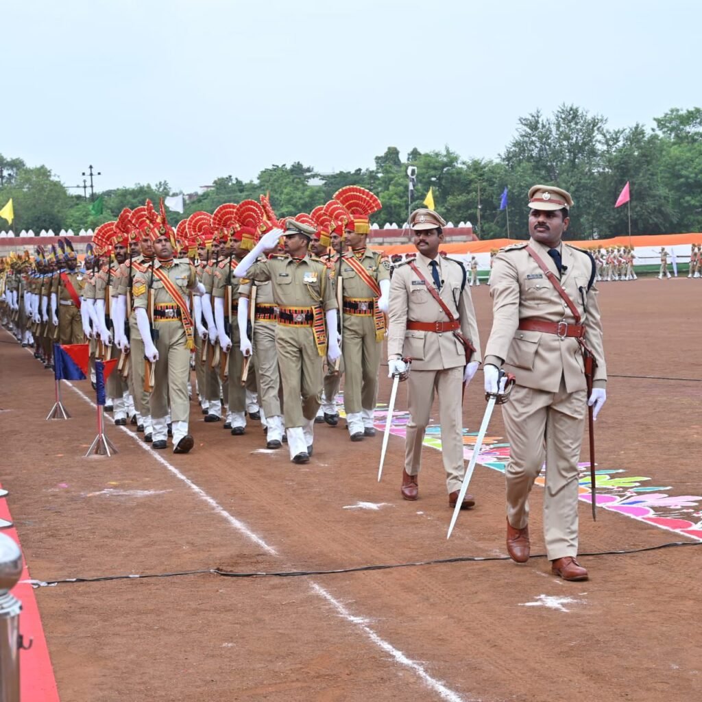 मुख्यमंत्री विष्णु देव साय ने आज सवेरे राजधानी रायपुर के पुलिस परेड मैदान में आयोजित स्वतंत्रता दिवस के राज्य स्तरीय समारोह में ध्वजारोहण कर परेड की सलामी ली।