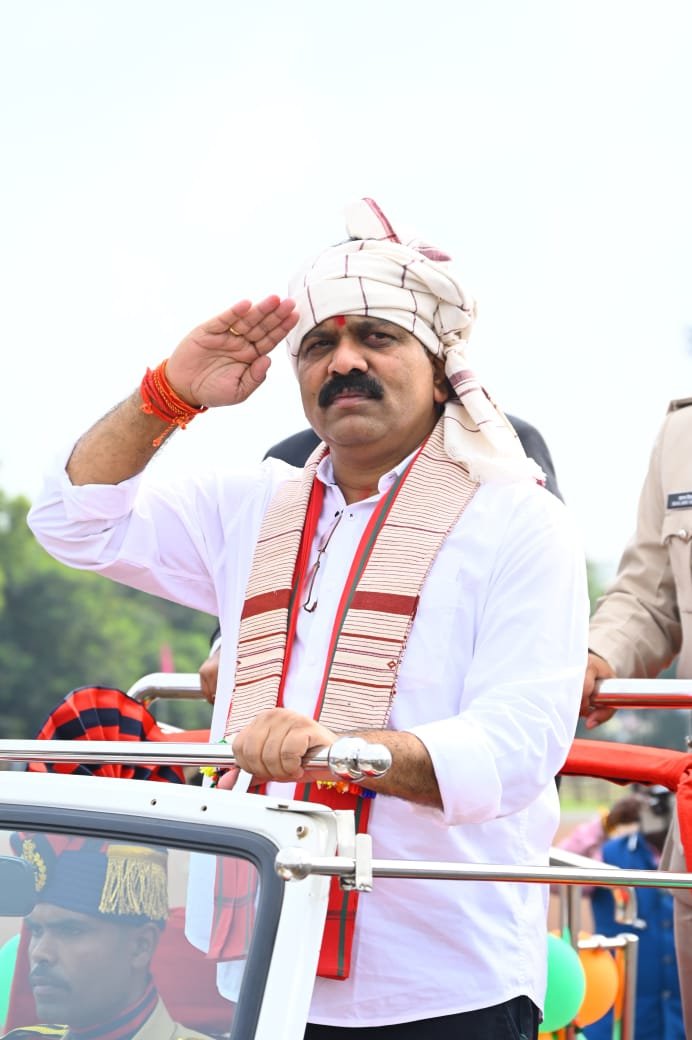 रायपुर, -आज उपमुख्यमंत्री विजय शर्मा ने लाल बाग मैदान जगदलपुर में स्वतंत्रता दिवस के अवसर पर ध्वजारोहण किया। उपमुख्यमंत्री विजय शर्मा ने बस्तरिया वेशभूषा टेकरा तुवाल(धुरवा पागा) पहनकर स्वतंत्रता दिवस के अवसर पर ध्वजारोहण किया। बस्तरिया वेशभूषा पहनकर ध्वजारोहण करना न केवल बस्तर की संस्कृति के प्रति उनके सम्मान और जुड़ाव को दर्शाता है, बल्कि यह संदेश भी देता है कि हमें अपनी स्थानीय परंपराओं और सांस्कृतिक धरोहर को संजो कर रखना चाहिए।