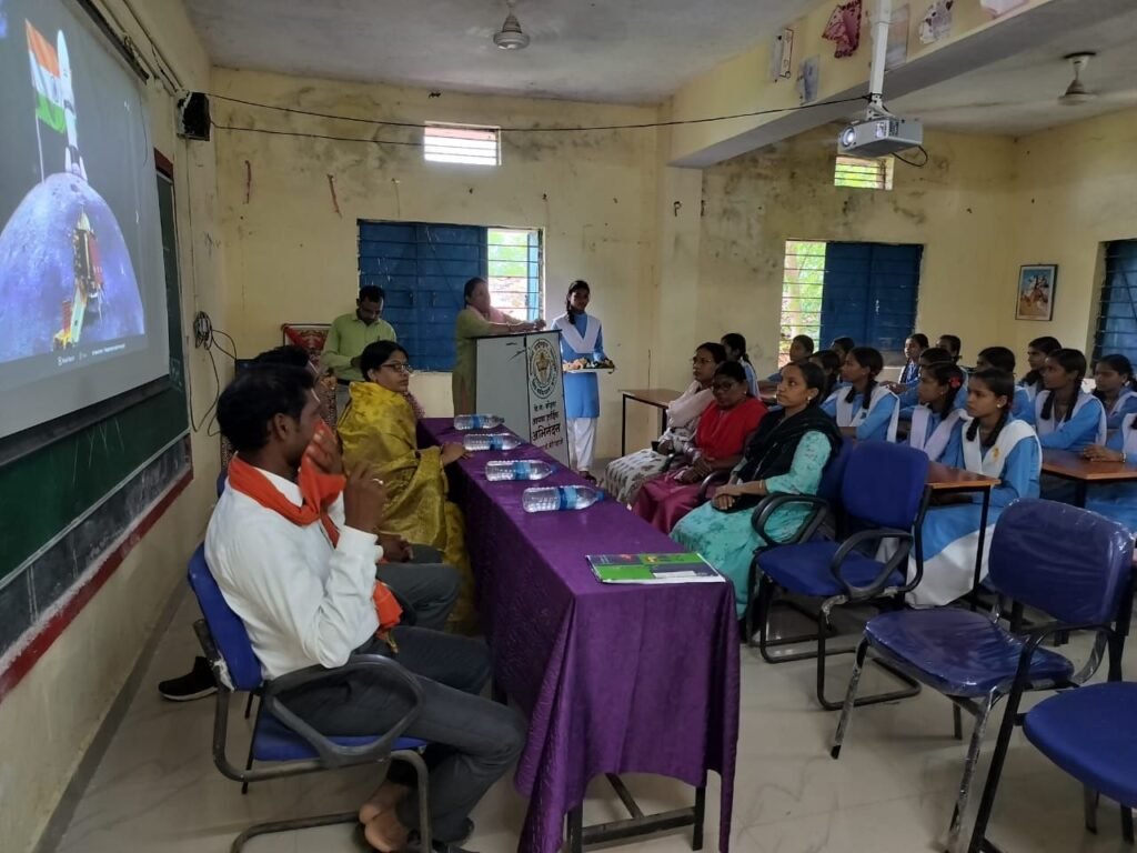 कार्यक्रम का सफल संचालन विज्ञान व्याख्याता पूनम तिवारी द्वारा किया गया।उन्होंने चंद्रयान 3 से जुड़ी महत्वपूर्ण जानकारी,चंद्रयान का उद्देश्य एवम इसकी सॉफ्ट लैंडिंग के बारे में बच्चो को अवगत कराया।जिसकी वजह से भारत दुनिया में चंद्रमा के दक्षिण ध्रुव पर चंद्रयान उतारने वाला पहला देश बन गया है।जिस वजह से हम सब आज राष्ट्रीय अंतरिक्ष दिवस मना रहे है। हमारे देश के लिए गौरव का विषय है।कार्यक्रम में संकुल समन्वयक अखिलेश मिश्रा ने भी चंद्रयान 3 की बनावट और उसके रोवर प्रज्ञान तथा शिवशक्ति प्वाइंट के बारे में जानकारी दी।बच्चो द्वारा भी इस विशेष दिवस पर अंतरिक्ष से जुड़ी रोचक तथ्यों को साझा किया गया।जानकारी से सभी बहुत रोमांचित हुए।इस कार्यक्रम में संस्था प्रमुख मंजू कुर्रे,व्याख्याता पूनम तिवारी, तरुणा नामदेव, नूतन यादव, भूमिका देशमुख, साध राम बंजारे, परसराम पालेकर, नसीमा परवीन एवम सभी विद्यार्थी उपस्थित थे।