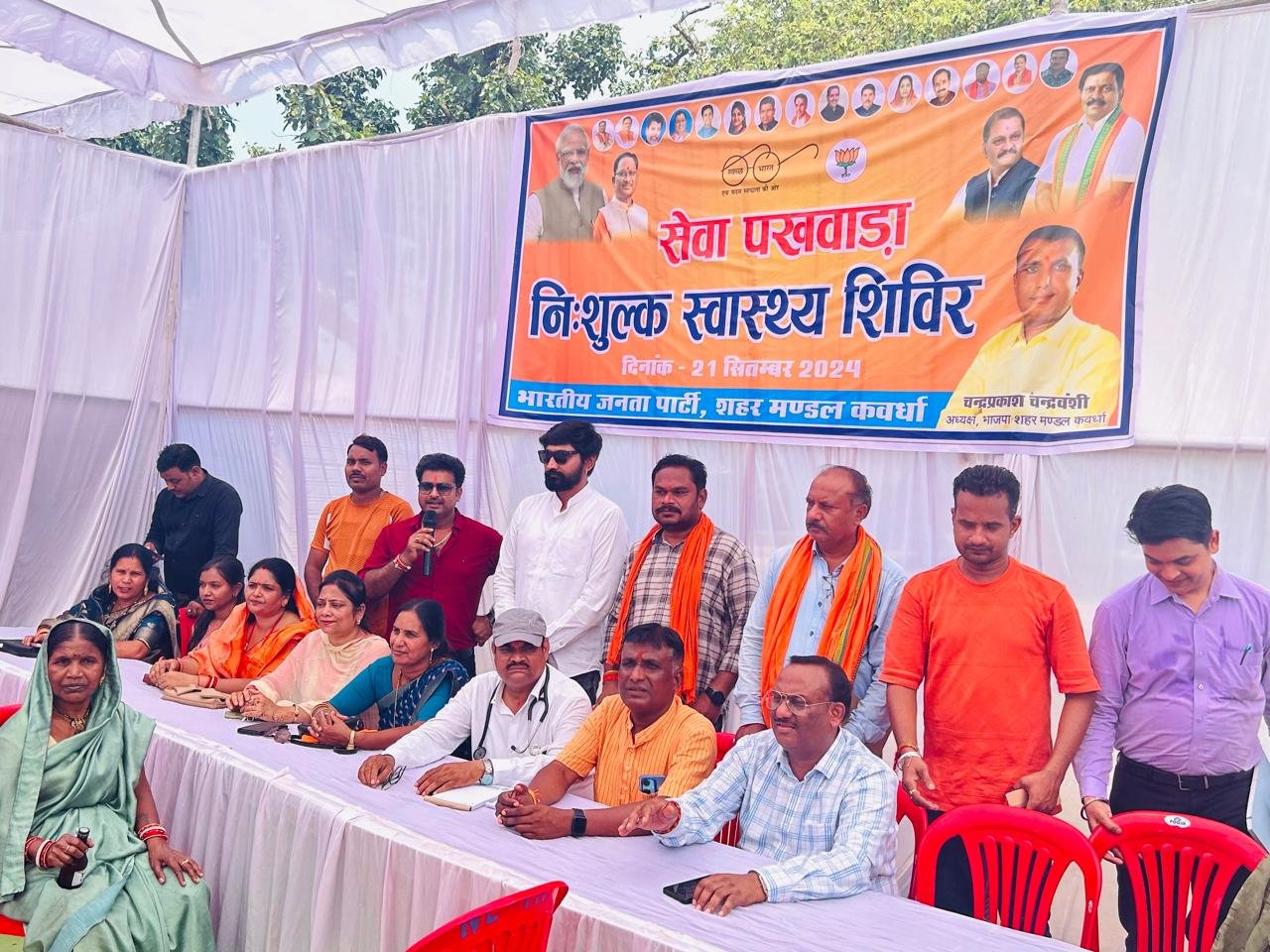 कवर्धा-प्रधानमंत्री नरेंद्र मोदी के जन्म दिवस17 सितंबर से राष्ट्रपिता महात्मा गांधी के जन्म दिवस 2 अक्टूबर तक चलाए जा रहे सेवा पखवाड़ा के तहत आज भारतीय जनता पार्टी कवर्धा शहर मण्डल द्वारा निशुल्क स्वास्थ्य परीक्षण शिविर आयोजित किया जिसमें शहर के विभिन्न विभिन्न वार्डों से लोगों ने शिविर में शामिल होकर अपनी स्वास्थ्य का परीक्षण कराया तथा डॉक्टर से स्वास्थ्य संबंधित परामर्श प्राप्त किया साथ ही निशुल्क दवाई भी प्राप्त किया!