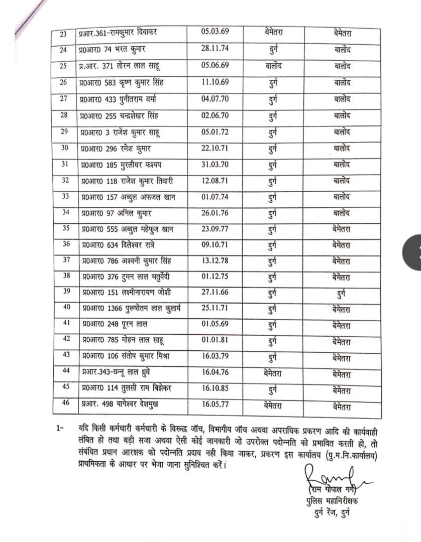???? दिवाली से पहले प्रमोशन का तोहफा: दुर्ग, बालोद और बेमेतरा के 46 प्रधान आरक्षक का हुआ प्रमोशन।