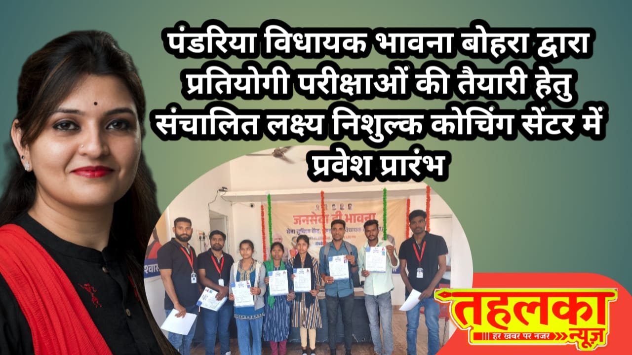 पंडरिया विधायक भावना बोहरा द्वारा विधानसभा क्षेत्र के ऐसे युवा जो प्रतियोगी परीक्षाओं की तैयारी करना चाहते हैं परन्तु संसाधनों की कमी व परिवार की आर्थिक स्थिति ठीक न होने की वजह से वह पीछे रह जाते हैं उनके लिए एक सार्थक प्रयास किया जा रहा है। भावना बोहरा द्वारा पंडरिया में लक्ष्य निशुल्क कोचिंग सेंटर की शुरुआत की जा रही है जिसमें प्रवेश की प्रक्रिया 2 जनवरी से शुरू हो चुकी है। इस सेंटर में पंडरिया विधानसभा के प्रतिभावान विद्यार्थियों को जो IIT-JEE, NEET और CGPSC जैसी प्रतियोगी परीक्षाओं की तैयारी करना चाहते हैं उन्हें निशुल्क कोचिंग दी जाएगी।
