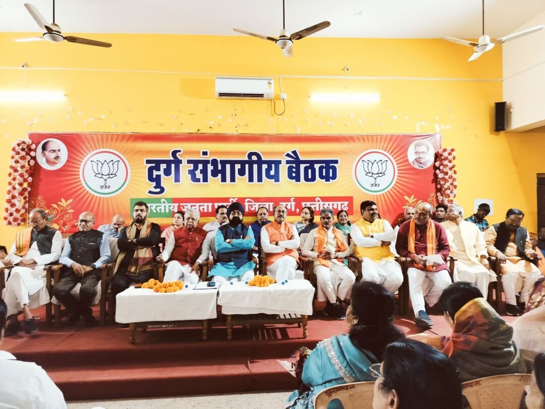तहलका न्यूज दुर्ग// भारतीय जनता पार्टी के संगठन चुनाव अंतर्गत दुर्ग जिला भाजपा अध्यक्ष के नाम घोषणा को लेकर भाजपा कार्यालय में महत्वपूर्ण कार्यकर्ताओं का सम्मेलन हुआ, दुर्ग जिला निर्वाचन अधिकारी एवं दुर्ग संभाग प्रभारी प्रदेश उपाध्यक्ष भूपेंद्र सवन्नी के मुख्य आतिथ्य और निवर्तमान जिला अध्यक्ष जितेन्द्र वर्मा की अध्यक्षता में जिला संगठन प्रभारी राजीव अग्रवाल, विधायक ललित चंद्राकर, गजेंद्र यादव, ईश्वर साहू, पूर्व कैबिनेट मंत्री जागेश्वर साहू, भाजपा प्रदेश कार्यसमिति सदस्य राकेश पाण्डेय, चंद्रिका चंद्राकर, पूर्व विधायक बालमुकुंद देवांगन, सावलाराम डहरे, जिला सह निर्वाचन अधिकारी उषा टावरी, भाजपा नेता प्रितपाल बेलचंदन, कांतिलाल बोथरा, शिव चंद्राकर, उपाध्यक्ष राजेन्द्र पाध्ये, डॉ. मानसी गुलाटी, उपस्थित रहे।