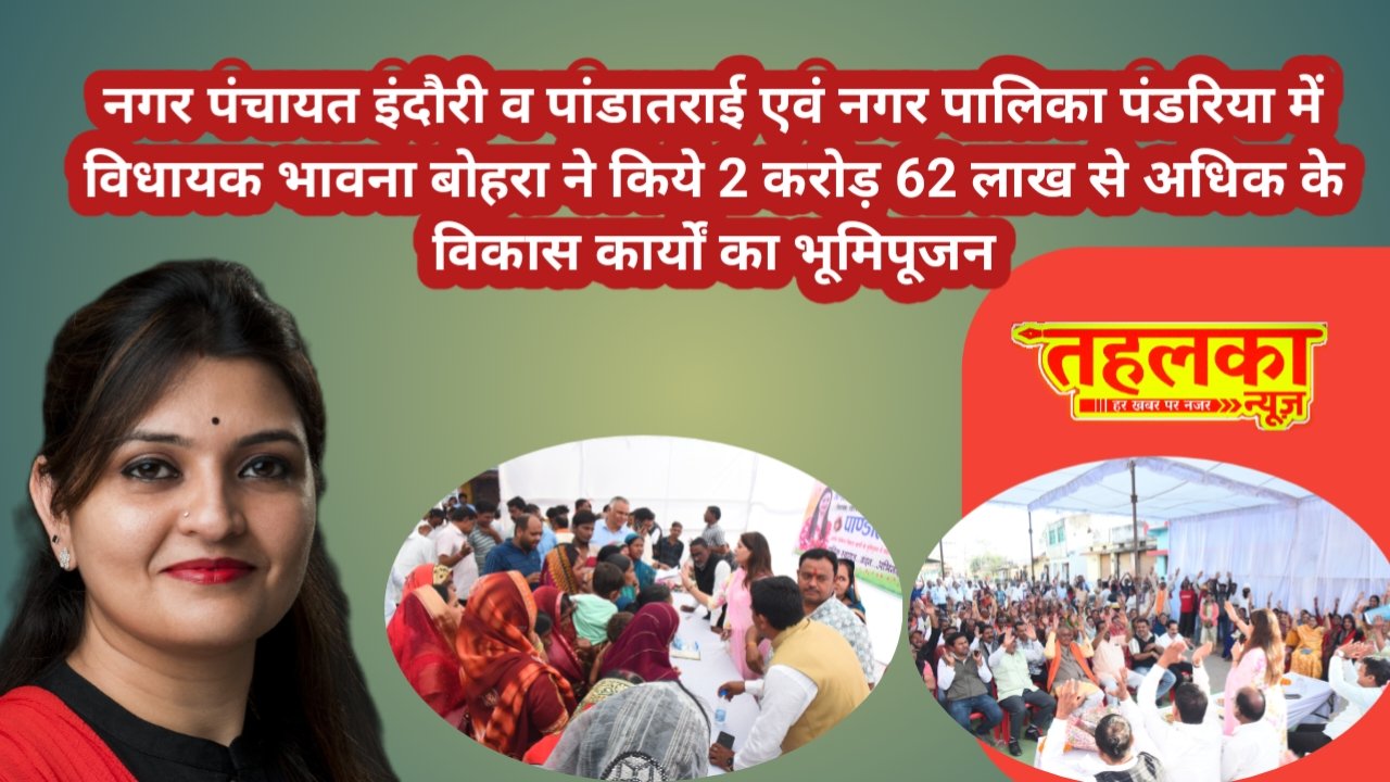 नगर पंचायत इंदौरी व पांडातराई एवं नगर पालिका पंडरिया में विधायक भावना बोहरा ने किये 2 करोड़ 62 लाख से अधिक के विकास कार्यों का भूमिपूजन