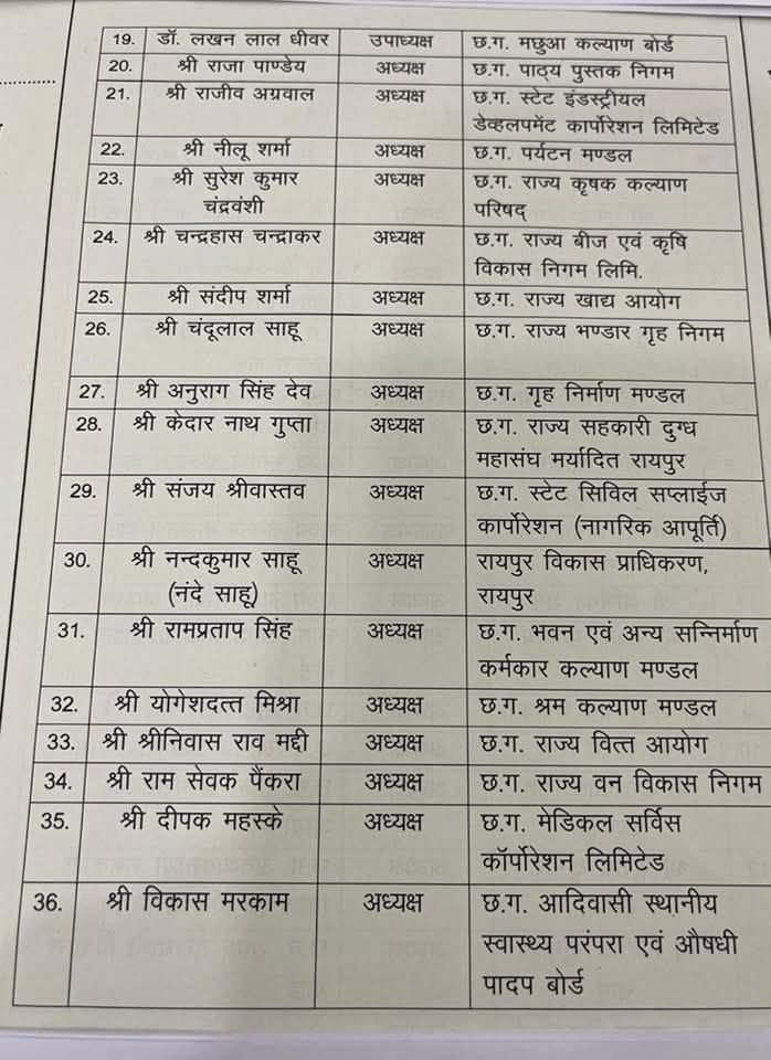 छत्तीसगढ़ राज्य के निगम, मंडल, बोर्ड एवं विभिन्न आयोगों की अध्यक्षों और उपाध्यक्षों कि नियिक्ति कि