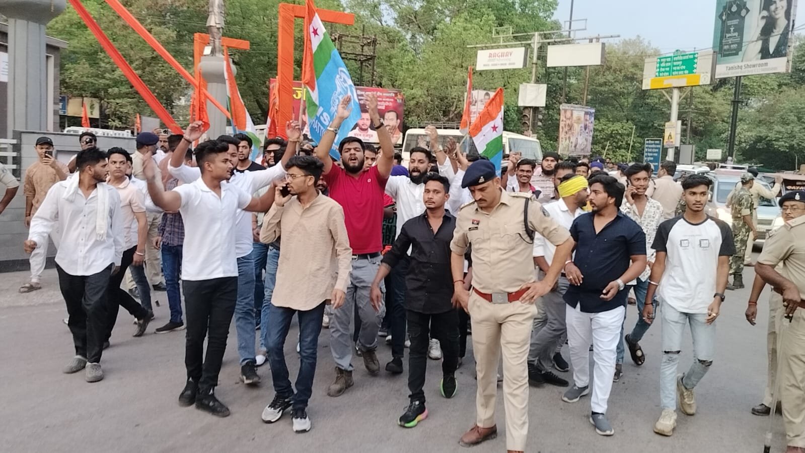 उपरोक्त प्रदर्शन में जिला अध्यक्ष गुरलीन सिंह ,, जिला प्रभारी महामंत्री गुरमुख सिंह मेहरा ,विधानसभा अध्यक्ष दुर्ग वरुण केवलतानी के साथ अन्य एनएसयूआई के साथीगण प्रदर्शन में मौजूद रहे…
