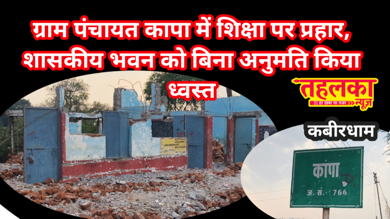 कबीरधाम जिले की ग्राम पंचायत कापा में एक गंभीर मामला सामने आया है, जहाँ बिना किसी प्रशासनिक अनुमति के शासकीय माध्यमिक शाला भवन को तोड़ दिया गया। ग्रामीणों का आरोप है कि भवन में उपयोग की गई सरकारी सामग्री को निजी लाभ के लिए बेच दिया गया है।