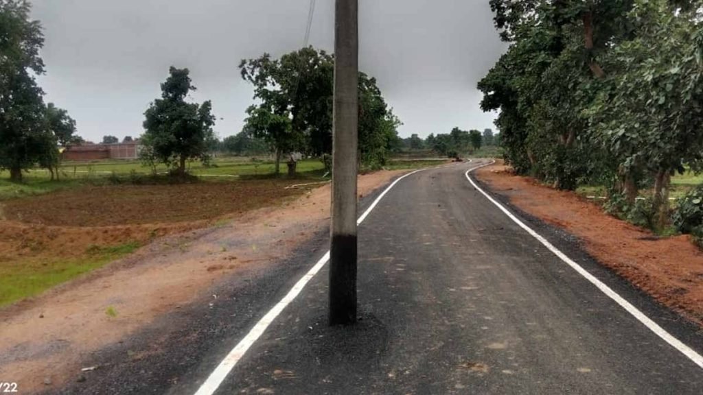 PMGSY ठेकेदार का कारनामा! बिजली पोल के अलग-बगल से बना दी सड़क, पहली बारिश में उखड़ने लगी डामर…