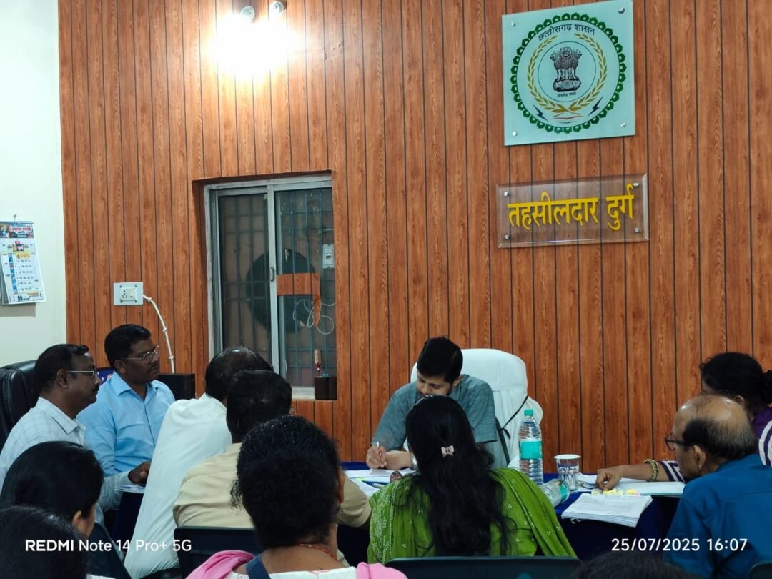 कलेक्टर दुर्ग अभिजीत सिंह ने आज तहसील कार्यालय दुर्ग में भुइयां कार्यक्रम के तहत राजस्व रिकॉर्ड शुद्ध रखने हेतु लंबित प्रकरणों जैसे खसरा संकलन, विलोपन, शून्य रकबा, नक्शा बटाकन,स्वत नामांतरण, dsc, कृषक पंजीयन सहित अन्य विषयों पर विस्तार से समीक्षा की। उन्होंने राजस्व नक्शे में बतांकन, न्यायलयीन आदेश उपरांत राजस्व अभिलेख दुरुस्ती हेतु लंबित प्रकरणों, भूस्वामी विहीन खसरा, आदि के संबंध में एक एक करके चर्चा कर समाधान के टिप्स भी दिए। शासन द्वारा निर्धारित समय सीमा में इस कार्य को पूर्ण करने कड़े निर्देश भी दिए। कलेक्टर ने बड़े पैमाने में लंबित नक्शे के बटाकन करने विशेष अभियान चलाने राजस्व निरीक्षकों, पटवारियों को लक्ष्य दिए है साथ ही डायवर्सन कराने के बाद जिन भूमिस्वामियों ने डायवर्सन की राशि जमा नहीं की गई उनसे लंबित डायवर्सन राशि वसूली करने भी अभियान चलाने के निर्देश दिए है। विदित हो कि डायवर्सन के करोड़ों राशि वसूली हेतु लंबित है। डायवर्सन के बड़े बकायादारों को चिन्हित कर उनसे बकाया राशि जमा करवाने के निर्देश दिए है। कलेक्टर के इस निर्देश के बाद डायवर्सन के बड़े बकायादारों से लंबित बकाया राशि वसूली में तेजी आएगी