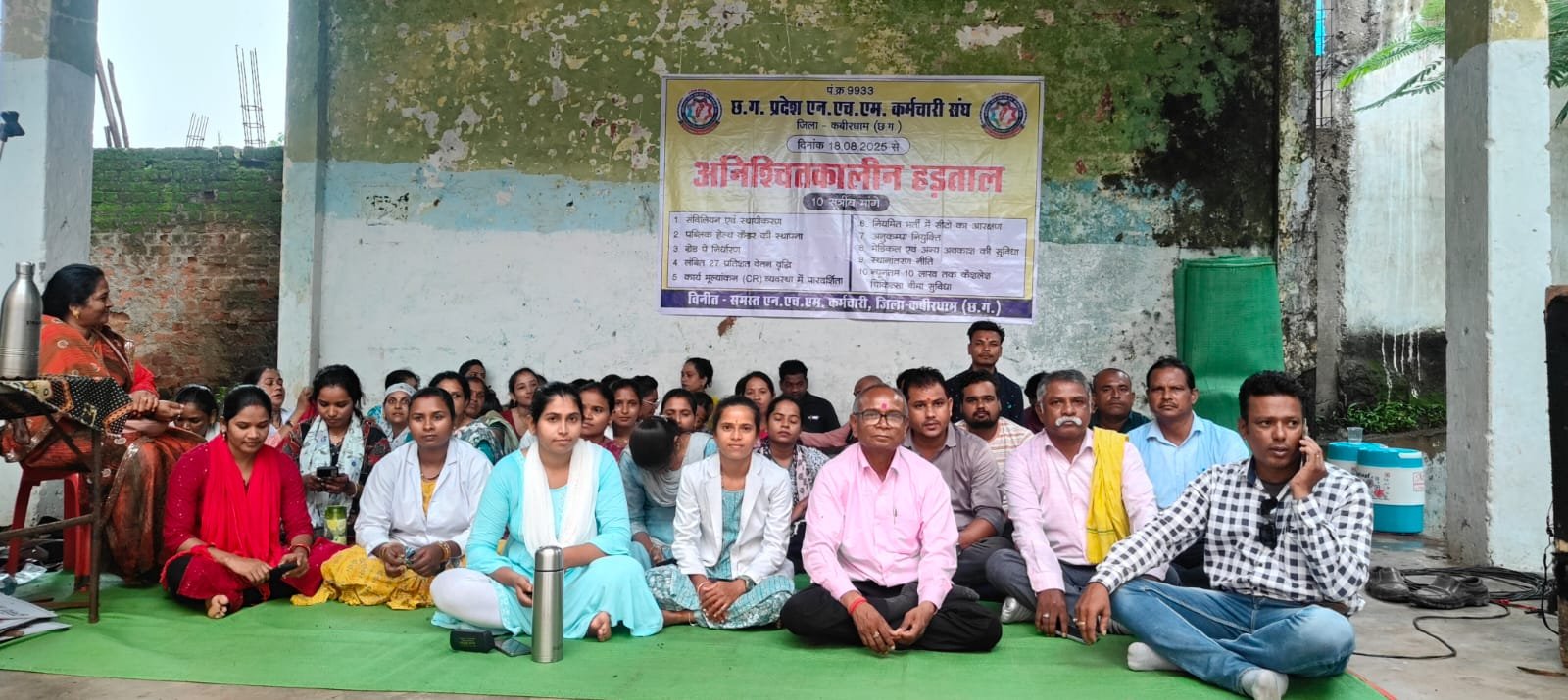 कबीरधाम : पांचवें दिन भी एनएचएम कर्मचारियों की हड़ताल जारी… अस्पताल खुद वेंटिलेटर पर है.