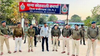 आदर्श आचार संहिता के तहत शांति और सुरक्षा सुनिश्चित करने कबीरधाम पुलिस ने निकाला फ्लैग मार्च