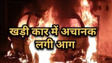 आग की लपटों से कार जलकर हुआ खाक, पास में खड़ी ट्रक को भी लेने वाला था चपेट में मौके पर फायर ब्रिगेड ने बुझाया आग